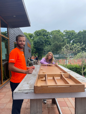 Tijden van de finales zijn deels onder voorbehoud dus kijk op toernooi.nl voor een actueel overzicht. Verder wordt er vanmiddag nog gezellig geswingd op muziek van dj Patriez en moet de sjoelbak score van 147 nog verbeterd worden!