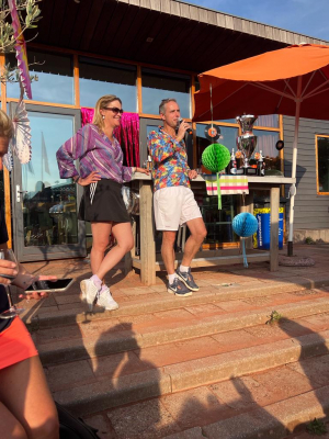 Op zondag 11 september was het weer zover: het altijd gezellige OTC ECHTPARENTOERNOOI waaraan maar lieft 18 setjes hebben meegedaan! Dit jaar lag de organisatie in handen bij Soul & Adriaan Robertson. Het thema DISCO hebben ze tot in de kleinste details doorgevoerd! En wat een feest was het...LP's, disco tunes, cupcakes met spikkels, kauwgomballen en mentos op de wedstrijdtafel! De weergoden waren ons ook goed gezind, het leek wel hoog zomer. Kortom, alle ingrediënten voor een geweldige dag. Enorm veel dank voor de strakke organisatie Soul & Adriaan!